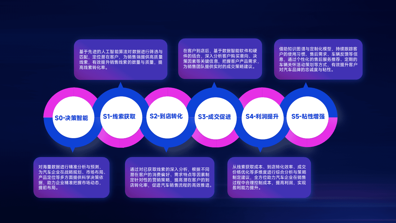 通过拓宽潜在客户来源、、优化线索分配并提高到店转化率,,以增强销售效率。。。同时,,利用线索数据不断优化分析模型,,,有效提升转化率,,,,扩大营销影响力。。。